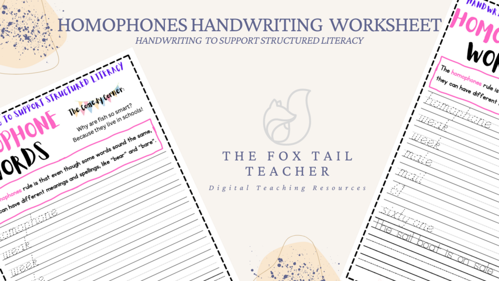 Homophones Handwriting Worksheet to support Structured Literacy