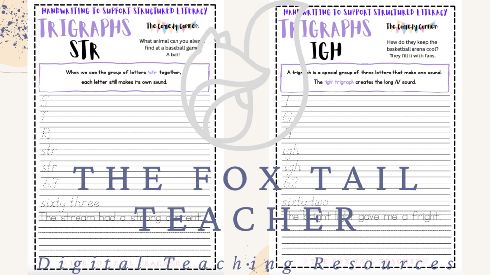 These trigraphs handwriting practice worksheets are a fun and engaging resource designed to help young learners master trigraphs in a playful way. Each worksheet provides a clear explanation of what a trigraph is and specific rules that apply to the various trigraphs. The handwriting practice exercises enable children to reinforce their understanding of these three-letter combinations through repetitive writing tasks. Additionally, these worksheets sprinkle in a touch of humour with a lighthearted joke, adding an element of enjoyment to the learning process.