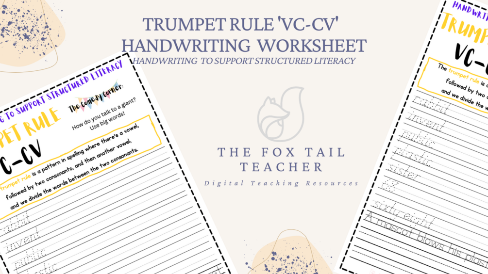 Trumpet Rule VC - CV Handwriting Worksheet to support Structured Literacy