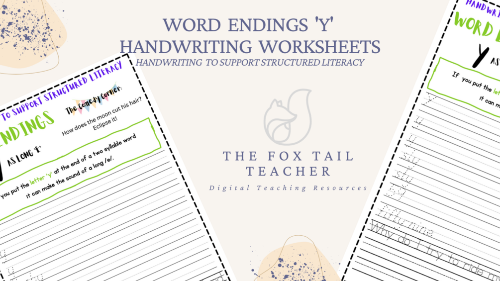 Word Endings 'y' Handwriting Worksheets to support Structured Literacy